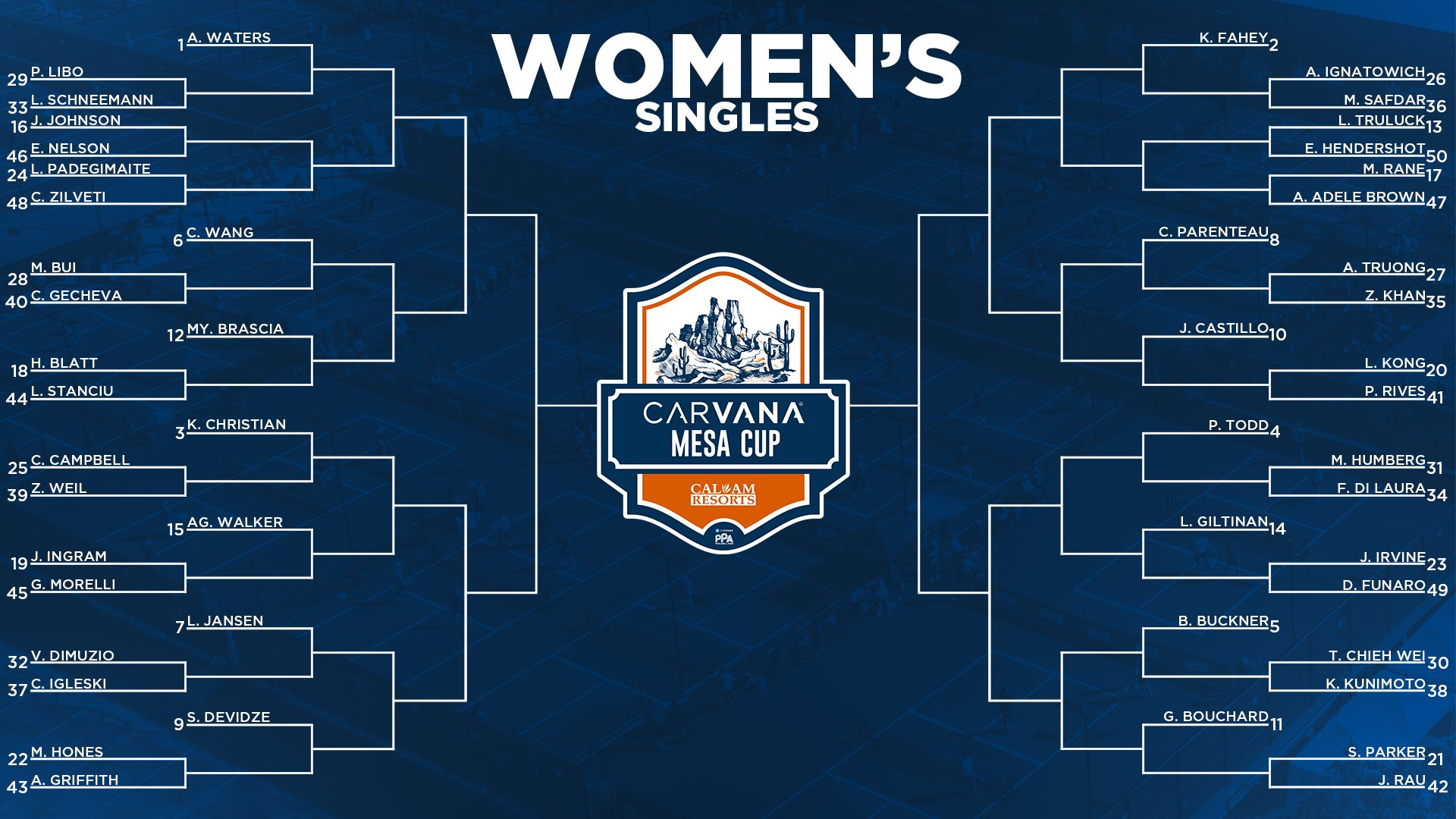 - *This graphic shows Lara Giltanan as the 14 seed, but the 14 seed is actually Angie Walker