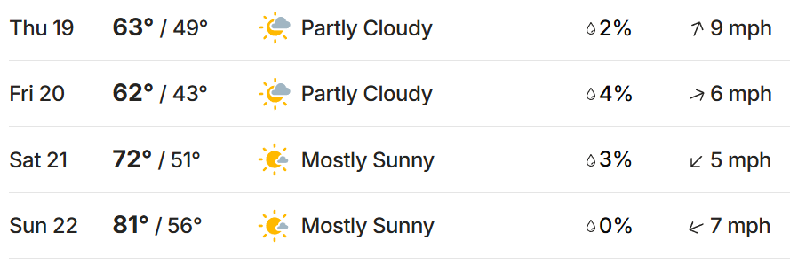 It will be on the colder side of things in Mesa, up until Championship Sunday. Wind is playing a factor early on in the draw, but lessens as the week progresses.