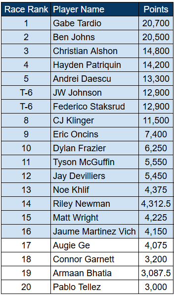 A warning - the points used to determine qualifiers is called The Race. On the PPA Tour website, the points default to The Rank, but The Race determines who qualifies for the Finals.