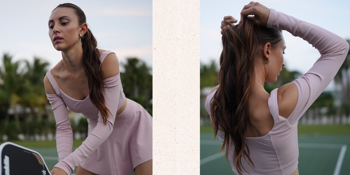 Why it works: Whether you're rocking long locks or just need to keep the sweat off your face, a headband is the perfect go-to on the court. For players like Alix Truong, it's as simple as throwing it on and tying it up—use code 10DINK for 10% off. Boom, you are court-ready.