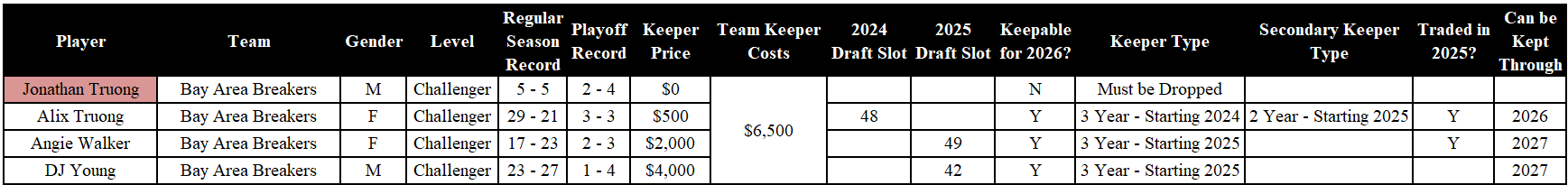 - Teams may designate a player that was drafted in 2024, traded in 2025 (regardless of when) and was not a Free Agent in 2025 as their one (1) two-year keeper, with 2025 counting as Year 1