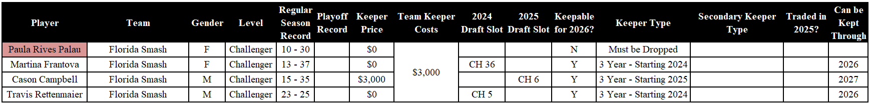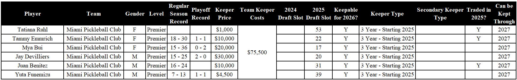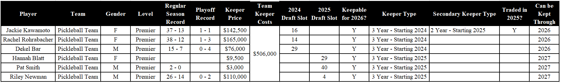 I think this goes without saying, but in the interest of thoroughness, all of this is subject to change. Major League Pickleball is known for drastically changing rules in the off-season, and sometimes even during the season. This article is meant as a snapshot of what the keeper and drop decisions look like for each team at the moment of publication.