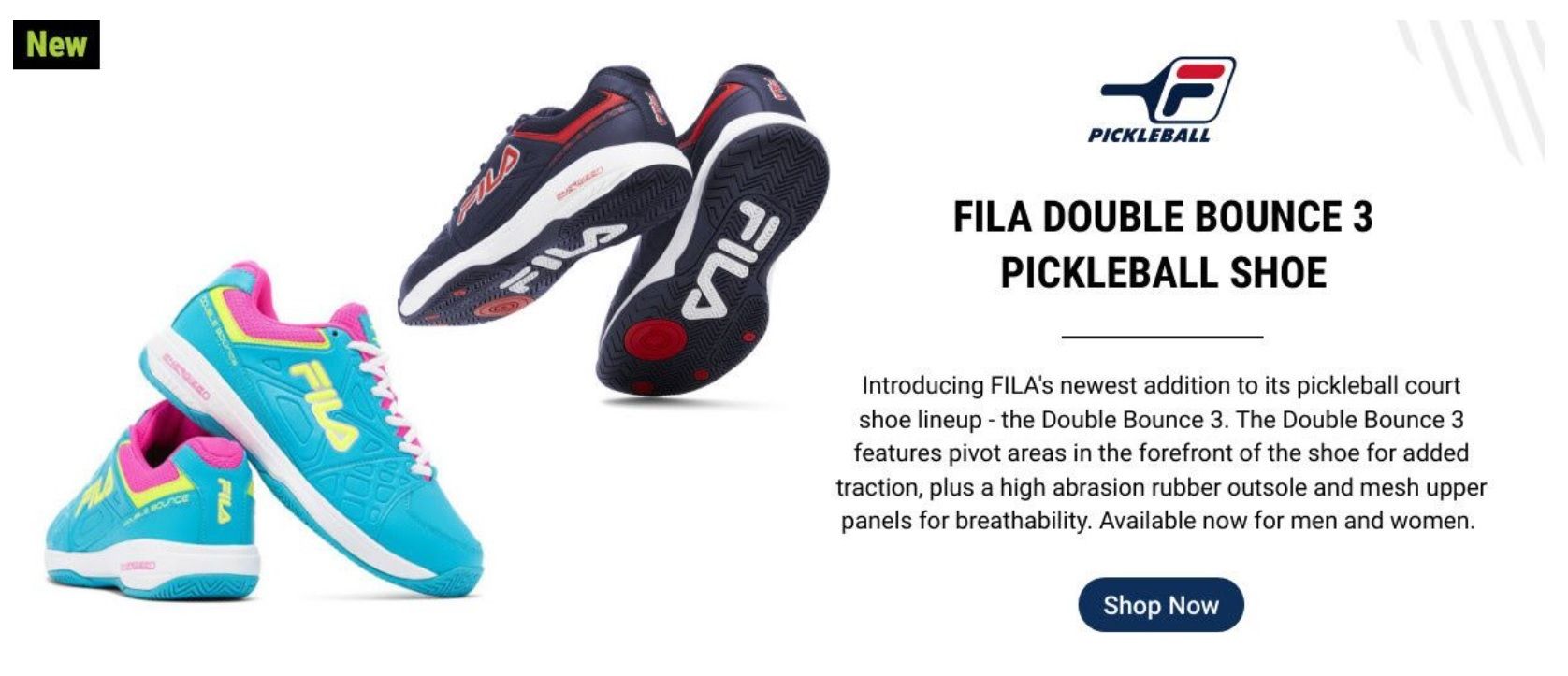 SHOP THE NEW FILA DOUBLE BOUNCE 3 PICKLEBALL SHOW AT FROMUTHPICKLEBALL.COM. GET 10%OFF WITH CODE 10DINK.