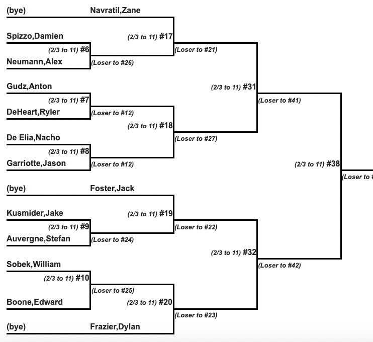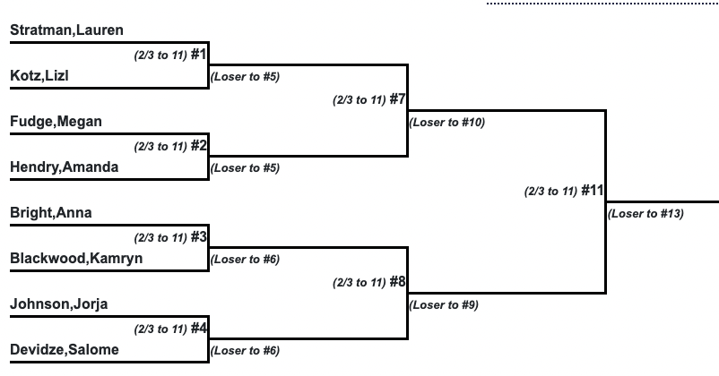 The Johnson, Bright, Fudge power struggle will continue in doubles as each player has their own partner this weekend. They are all still developing as doubles players and building that partner chemistry is one of the most important aspects in doubles. I'm expecting them to become podium strongholds later in the year.