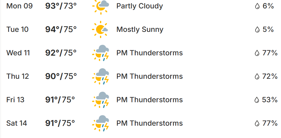 Around this time of year in Kuala Lumpur, it is between wet seasons, but precipitation is still normal. Nearly every day will involve afternoon rain, but the facility does have covered ceilings. With highs in the low to mid-90s and lows in the mid-70s, it will be hot and humid. The humidity levels are scheduled to be in the 50% - 60% range throughout the tournament.