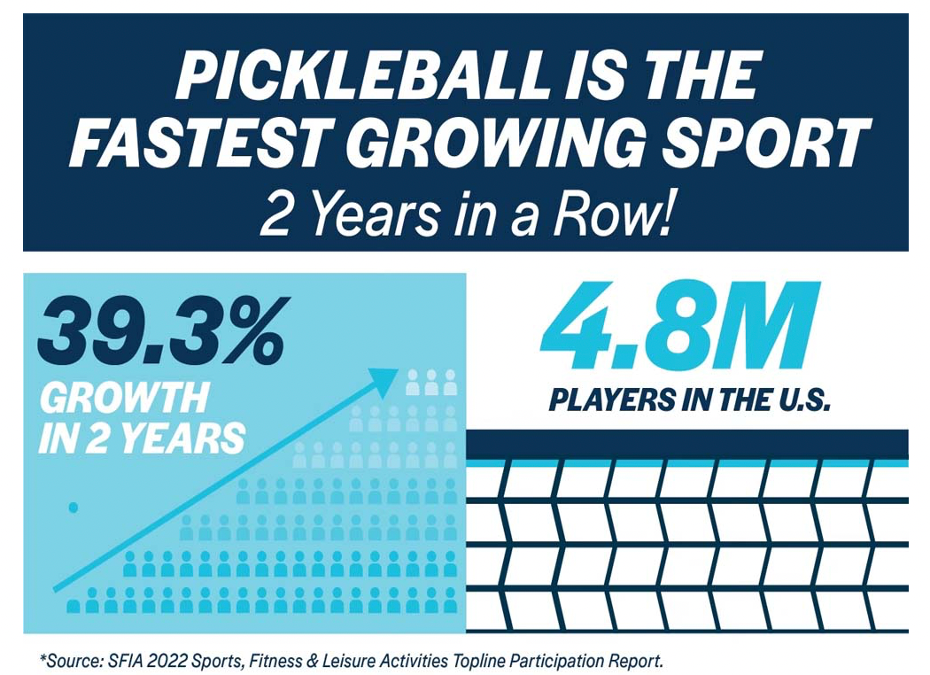"In 2020, a pandemic year, previous reports stated that over four million people picked up a paddle to play pickleball, with that number reportedly growing to over five million in 2021. Those numbers appear to have been conservative, but what the APP's report shows is that the popularity of pickleball has exploded. Pickleball courts continue to be built and installed nationwide, and people from coast to coast are trying the sport for the first time, and immediately falling in love with pickleball."