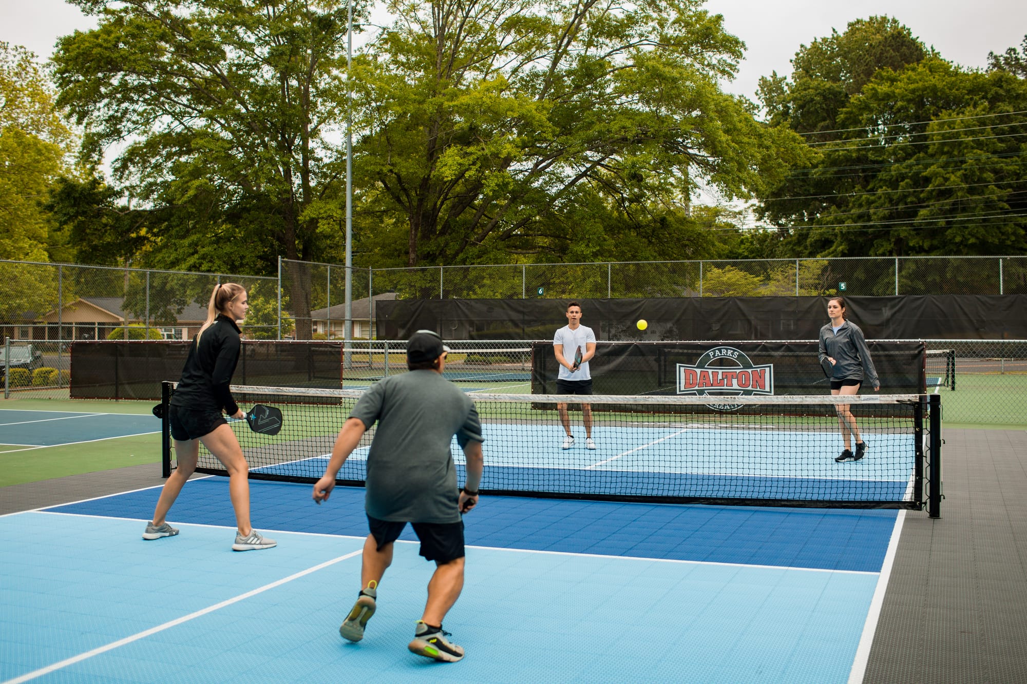 Pickleball courts use a special acrylic coating to paint the court, not your standard paint that's at your local hardware store. Standard colors include green or blue for the playing area and white for the lines.