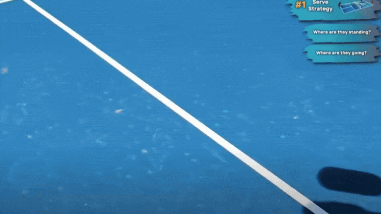 In this situation, you should aim your serve toward the right sideline. That alone will create a moment of advantage on your third shot.