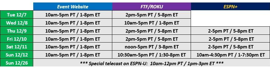 ESPN+: 10am – 4:30pm PT