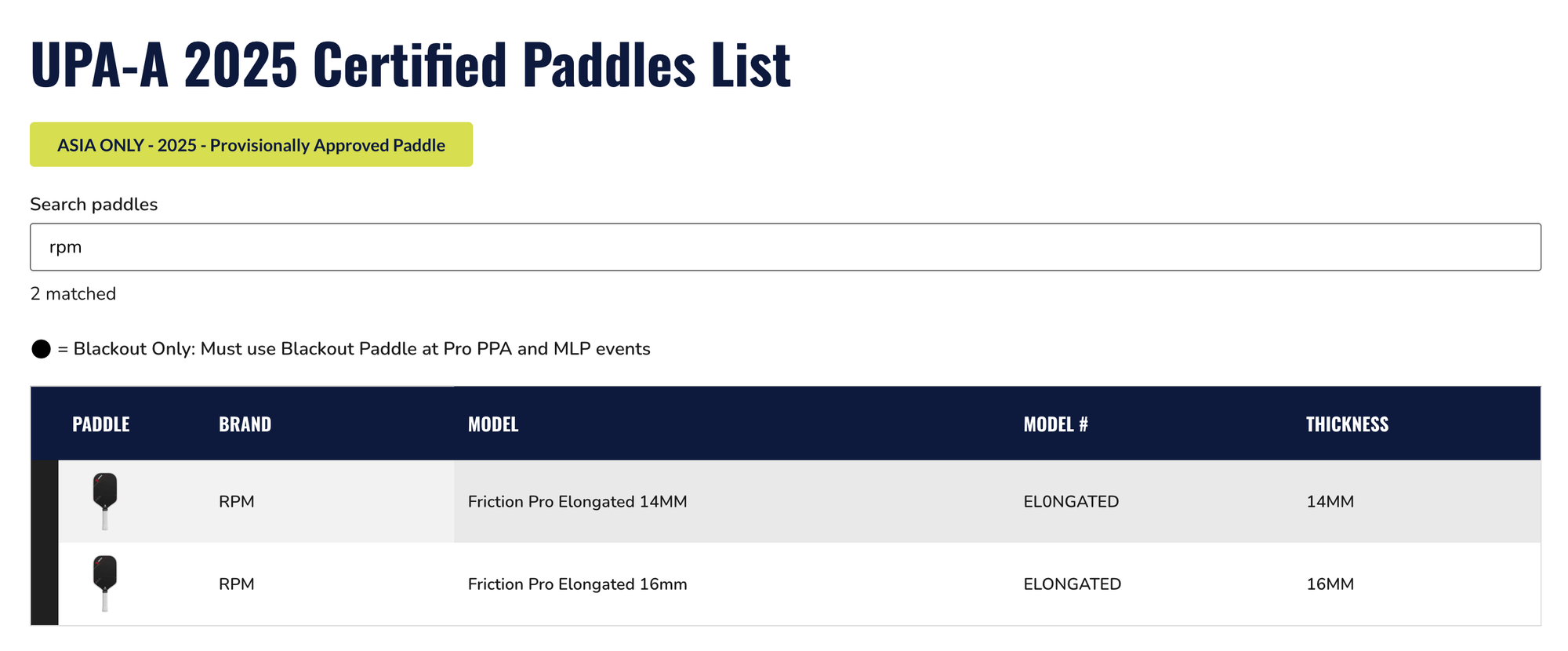Both the 14mm and 16mm elongated models have been added to the UPA-A Approved Paddle List: