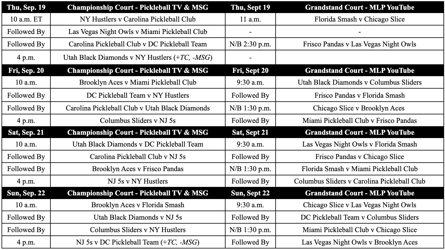 Can’t make it to the event in person? No problem. MLP NYC will be broadcast on Tennis Channel, MSG Networks, Pickleball TV, and the MLP YouTube channel: