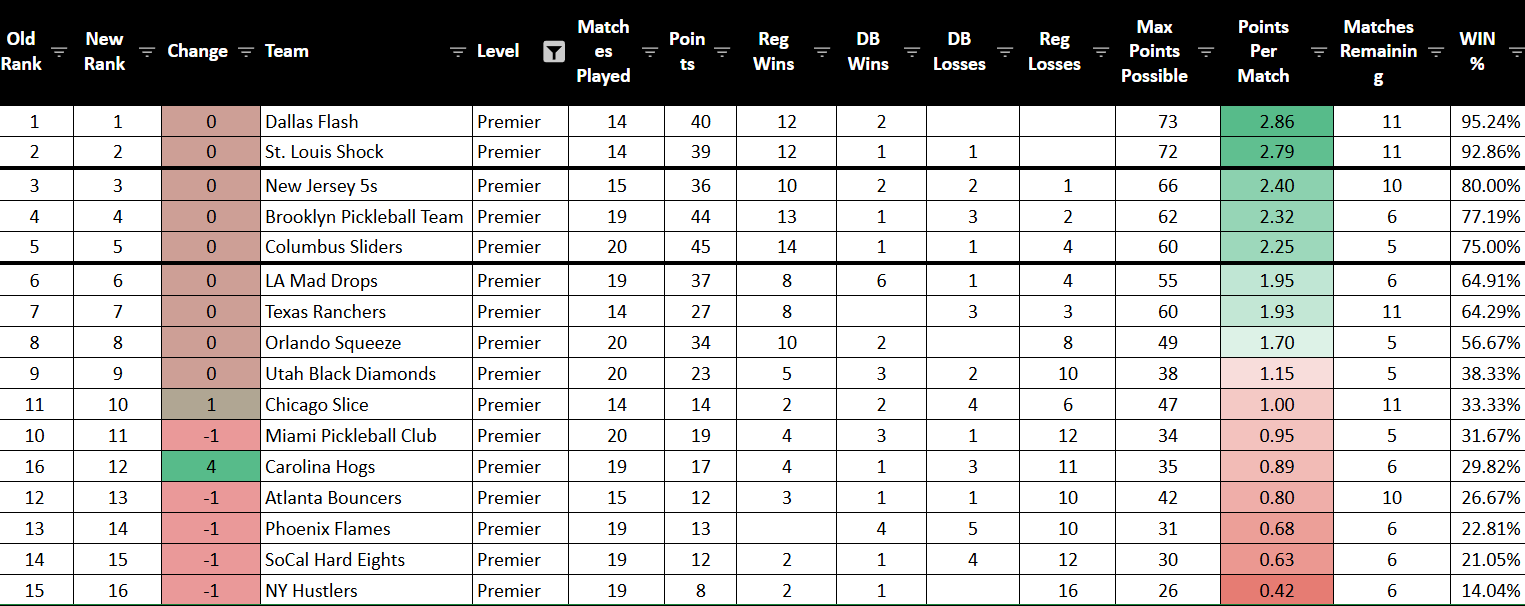 The Brooklyn Pickleball Team looks like it will be a menace once all players are starting. They will be worrisome for the top teams. If you want to understand how player rankings shape playoff positioning, the math going into the stretch run is fascinating.