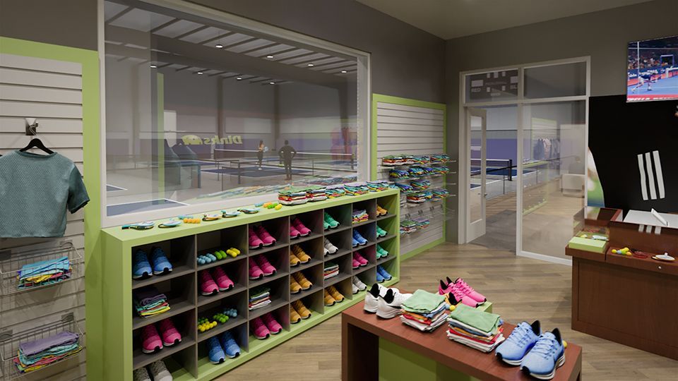 - Dinks Pro Shop: Dinks offers the latest in pickleball gear and apparel with offerings from all the major brands. Dinks also offers over 75 demo paddles for member use at no additional charge.