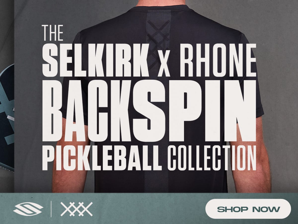 The Selkirk x Rhone Backspin Collection features a co-branded Luxx Control Air Epic pickleball paddle, Backspin Lined Shorts, and the Backspin Tee in special edition colorways.