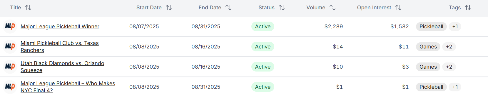 For the first time in its history, Polymarket has listed Major League Pickleball on its platform.