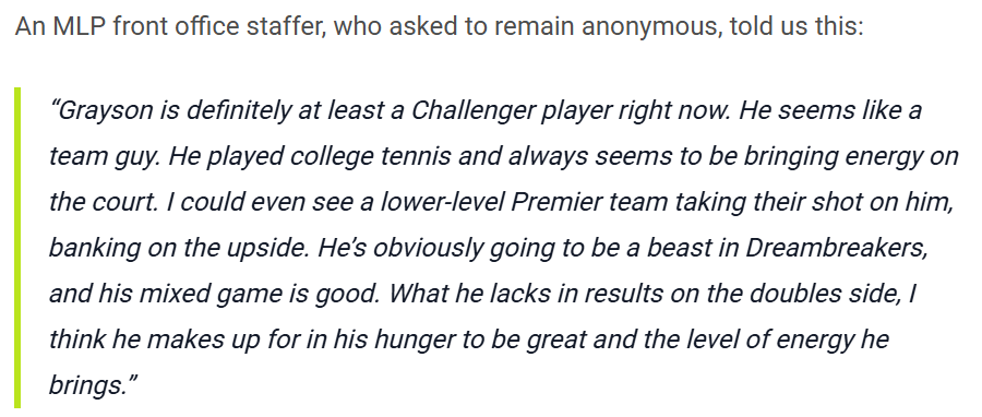 - Orlando Squeeze - Similary to the Hustlers, the Squeeze utilize their ability to place Tom Evans on the “Reserved List” and pick up the newly signed Grayson Goldin. Goldin has a bunch of upside potential, looks like he will fit well with this team, and is already based in South Florida.