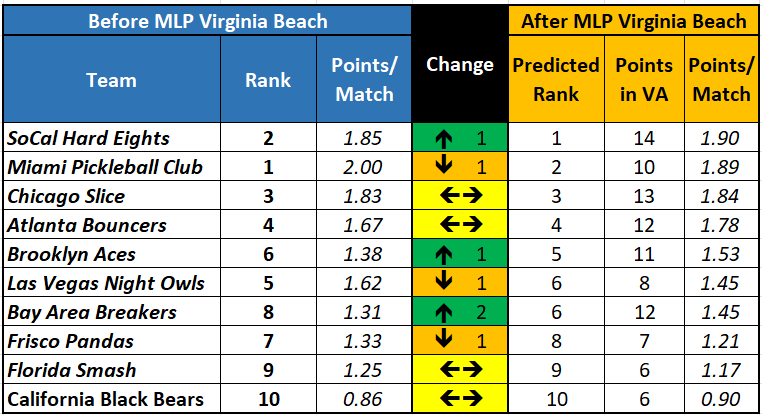 Here's a quick look at the current standings heading into MLP Virginia Beach, with credit to Real Clear Stats: