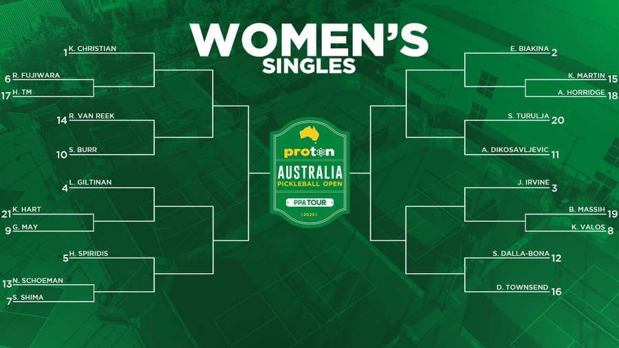- 16-year-old (13) Nicola Shoeman was the #1 overall draftee in the 2025 MLP Australia draft. She is a star on the rise, but could run into (5) Helena Spiridis in her second round match. Spiridis is one of the Australian players who is looking to play in the US on the PPA Tour this year.