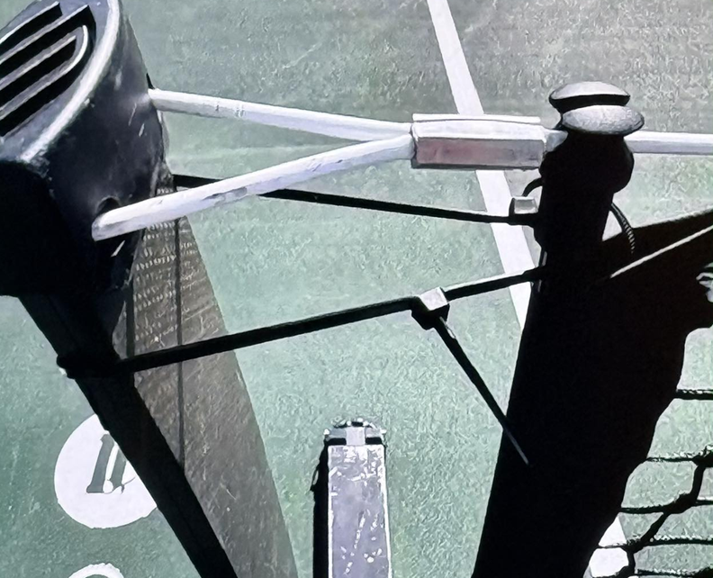 Roscoe got off to a smoking hot start in game three and was up 8-3 when the controversy hit. Bellamy hit a ground stroke toward the net post and it caromed off in a weird direction. Hunter stopped play because he thought the ball clearly hit the net post. After video review, the referees determined it did NOT hit the net post and Hunter was incredulous.