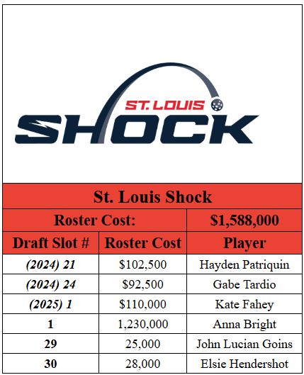 - The St. Louis Shock secured with No. 1 overall draft pick with a record-setting $1.23 million. Shocker to no one... they used it to bring back Anna Bright