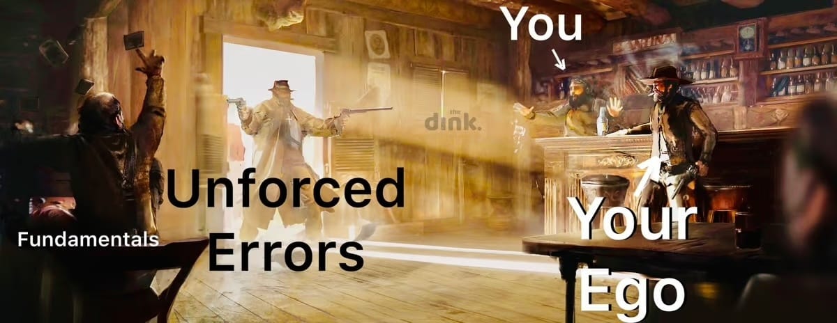 It's a matter of pride. A battle of ego. The message: 'I can out-dink you all - day - long buddy.' But every time you up the ante, you up the risk. Your pride left the back door open, and in comes unforced errors.