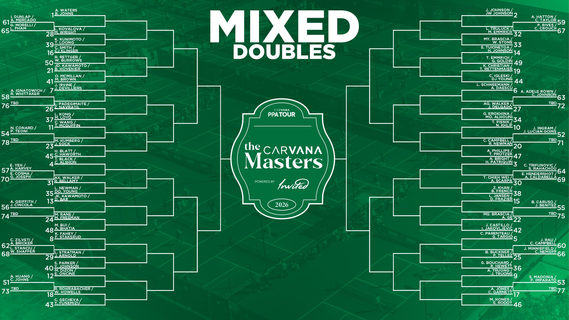 The PPA Tour is back in action from the Mission Hills Country Club in Rancho Mirage, California. The Carvana Masters Powered by Invited is the first PPA Tour tournament in the 2026 year.