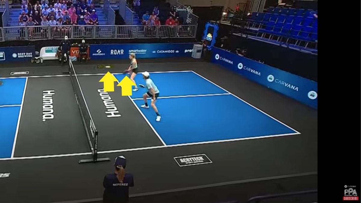 Look at how much longer she waited to get her paddle down. In Ben's image, the ball is just past the kitchen. In this one, the ball is already at the baseline before she's in a similar position.
